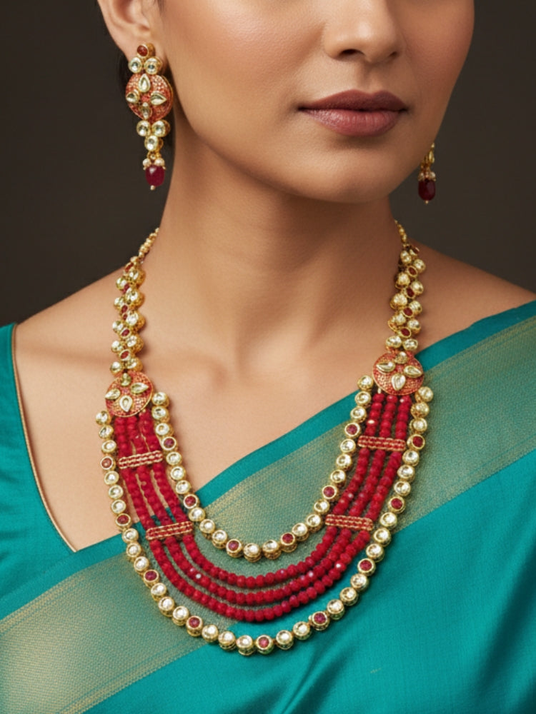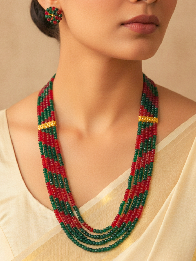 Zulekha Red and Green 5 Layer Necklacet Set