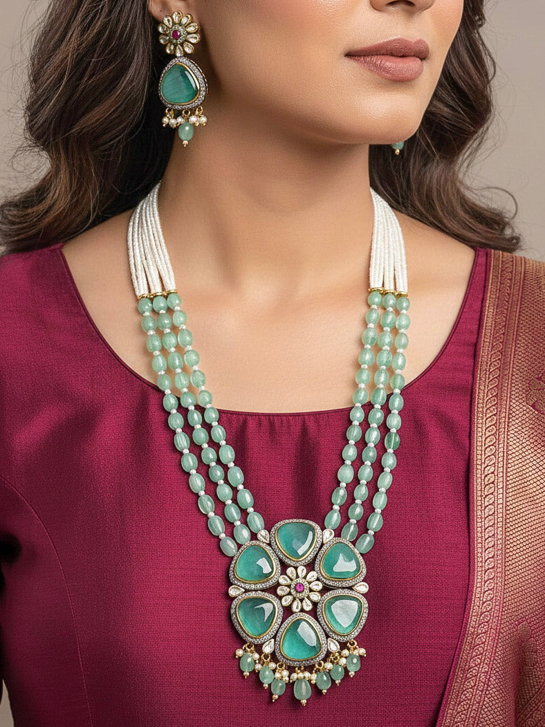 Vyomi Sea Green Necklace Set
