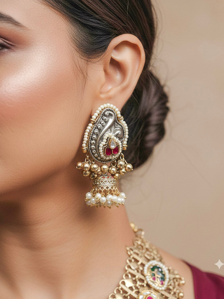 • Material : Brass, Pachi Kundan, Silver Balls, Pearls, Doublet Stones, Tumble Stone, Meenakari, Ghungroo.