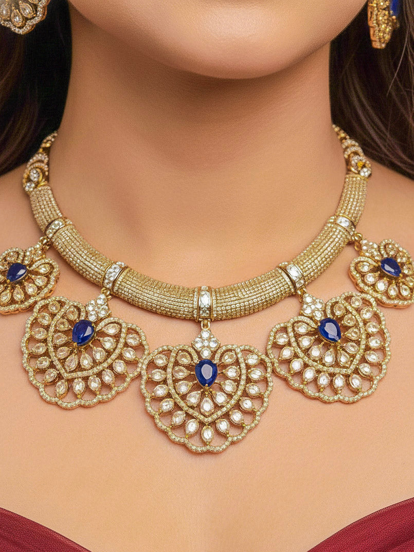 Raizel Blue Necklace Set (Mehendi Polish)
